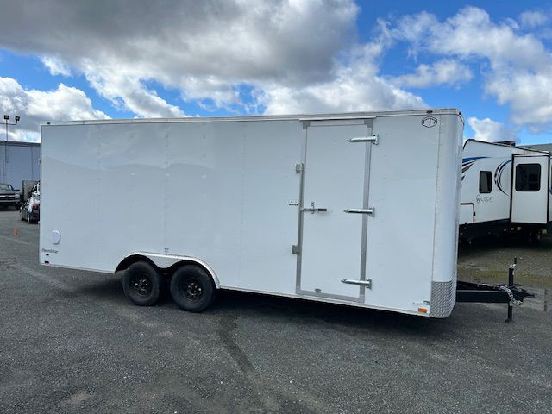 6" Extra Height, Steel Framed Walls, Floor & Roof, Ramp Rear Door, 3/8" Engineered Wood Paneling On Walls (24" o/c), 3/4 Plywood Floor (24" o/c), Semi Style Camlock Door Latch on Doors, ATP Exterior Aluminum Fenders, Leaf-Spring Axles All-Wheel Electric Brakes w/Breakaway* 12-Volt Breakaway Switch with Battery* *(On Models Requiring Brakes) Black Powder Coated Wheels with Black Center Caps, Radial Tires, Galvanized Roof, C/S Door (24" on 5 wide) (32" on 6 wide, 36" on 7 & 8 wide), 12" Stoneguard, 1 – Interior LED Dome Light, Clear Lens LED Clearance Lights, Clear Lens LED Strip Tail Lights, .030 White Aluminum Exterior