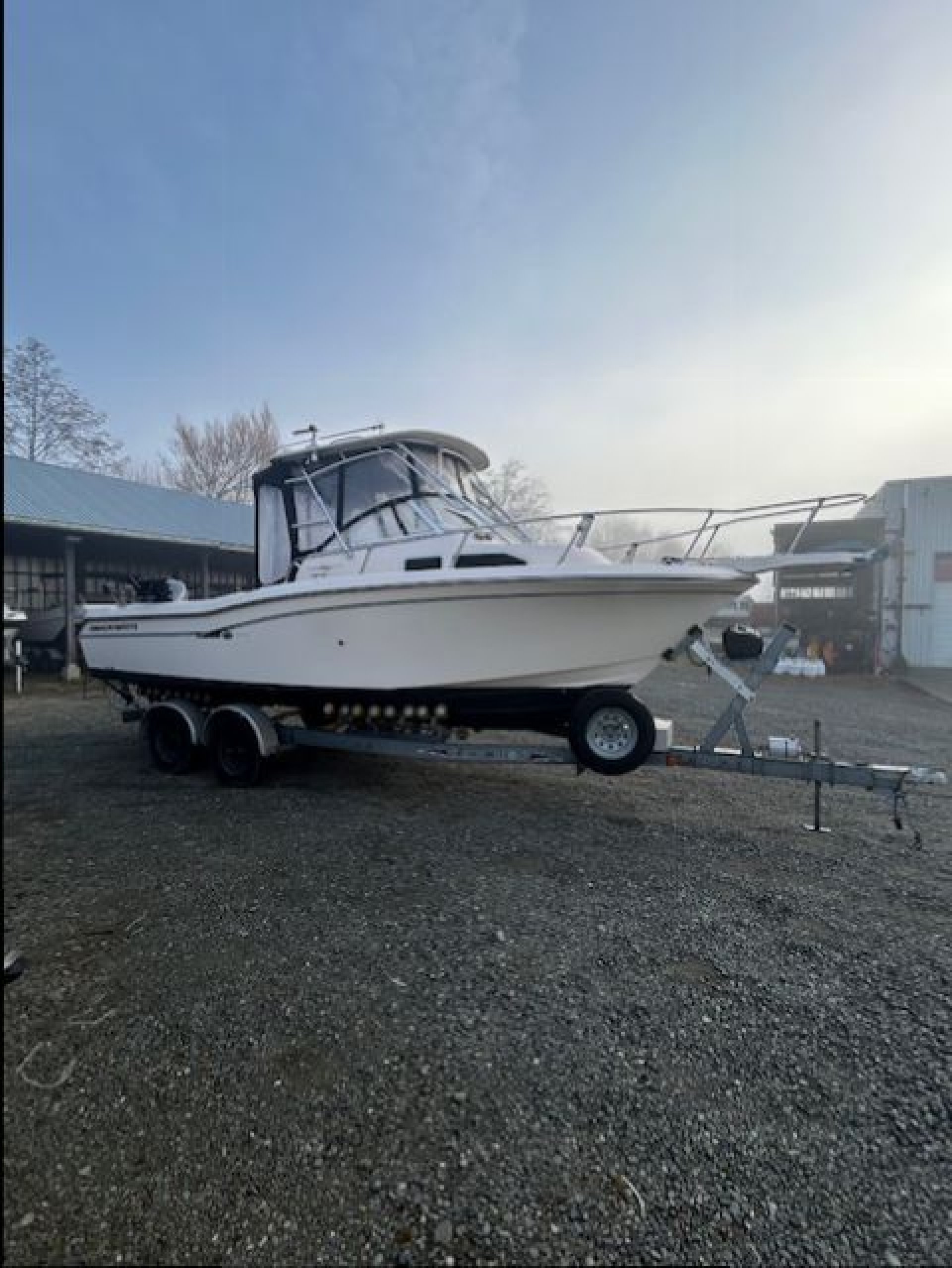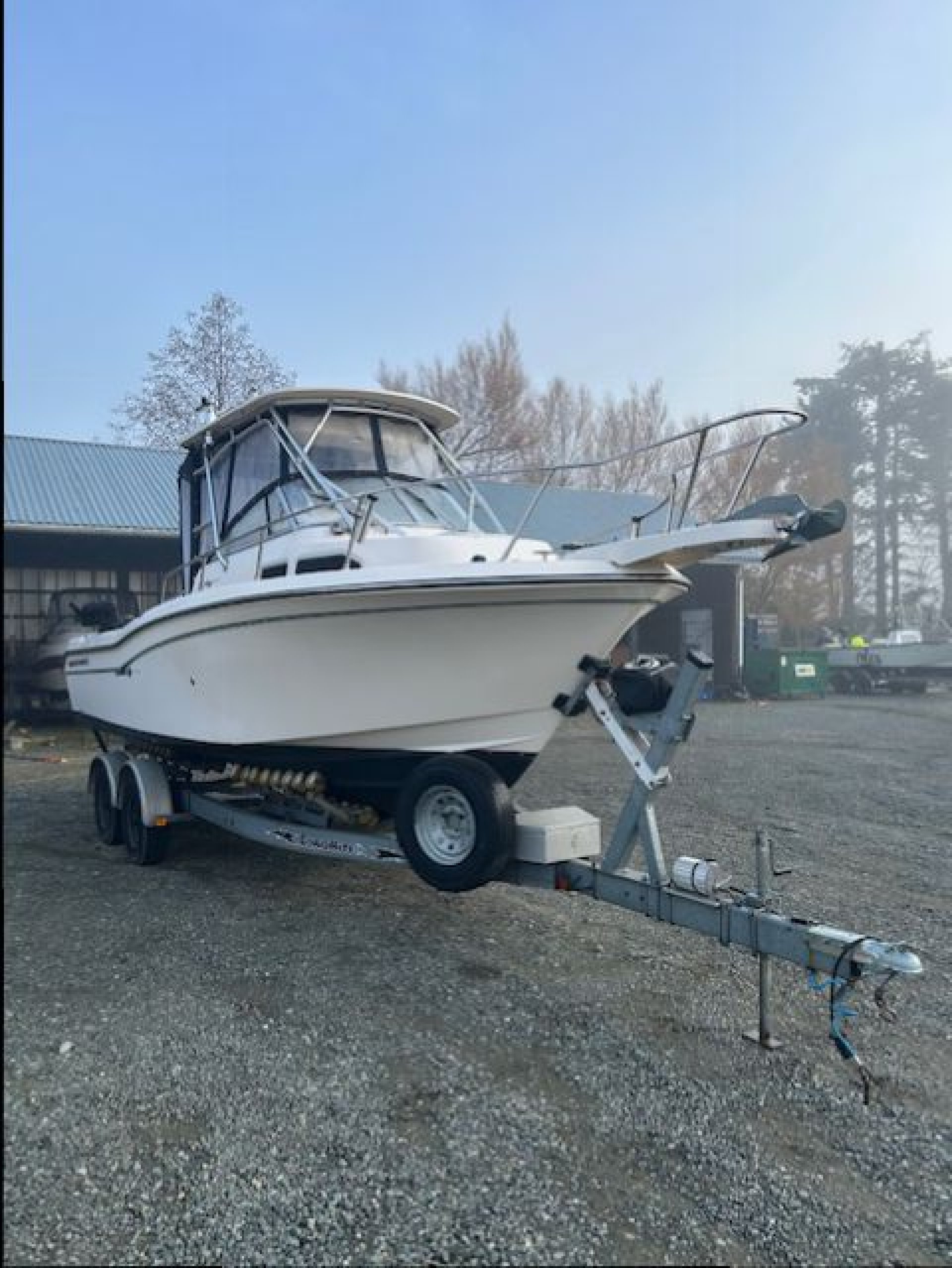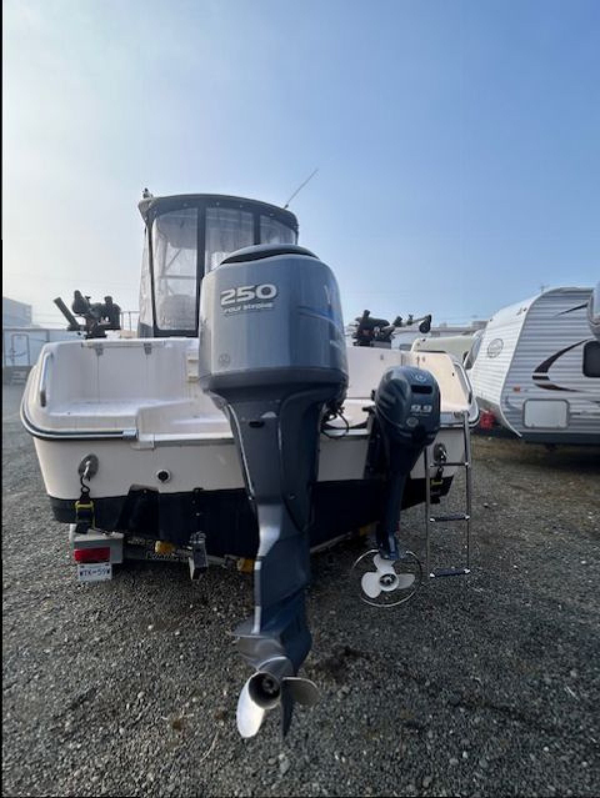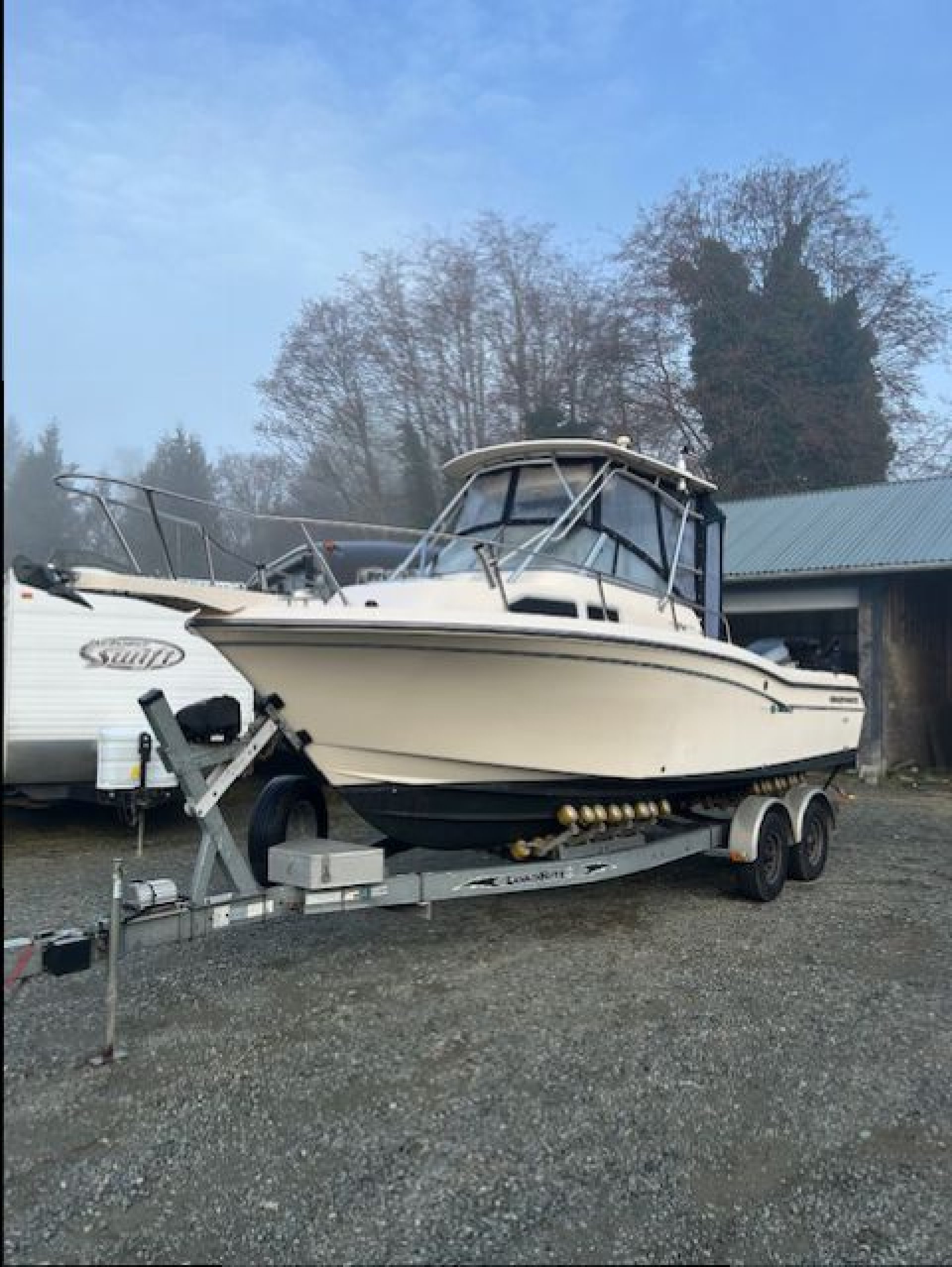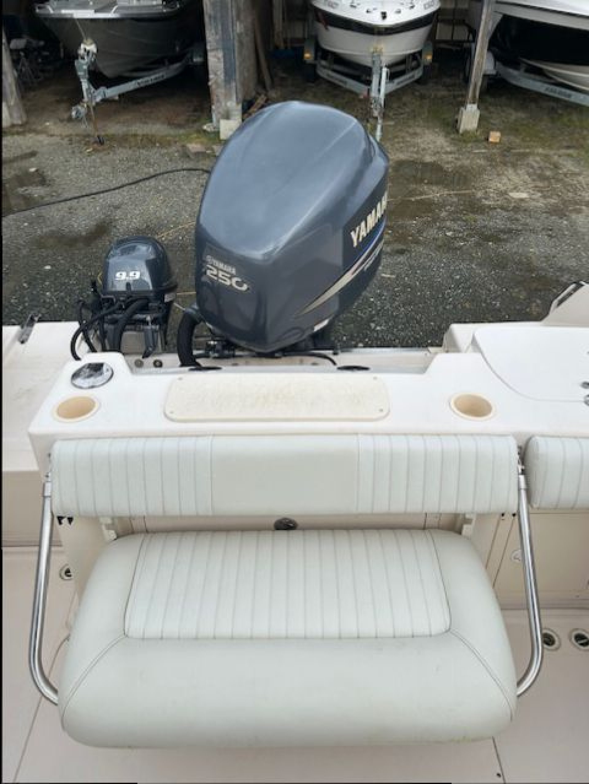 This Beautiful Grady comes equipped with New Canvas surround (2025), New Upholstered side bolsters and seats (2025), New Planar 2D ducted diesel heater (2025), New Yamaha 9.9 kicker (2024). The main Yamaha 250 has less than 500 hours on it and fully maintained. This Grady also comes with 3 Scotty down riggers and a Lowrance HDS 9 Plotter. powered windlass anchor, live well, fresh water wash down. Lots of extras, This vessel is ready to fish today and comes fully equipped. If you like to fish Tuna on the west coast there is a complete Tuna Fishing outrigger kit, poles, roof mount station, extra rocket launchers. The Loadrite trailer is in excellent condition ande includes a power winch and a spare tire.